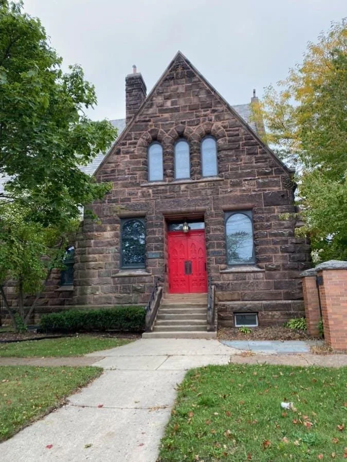The parish house to the west of the church was built in 1903 and designed by Waukegan architect Ira Wosfold. It is built of red and brown waterproof brick, sometimes known as ‘butter brick,’ with brownstone trim.
