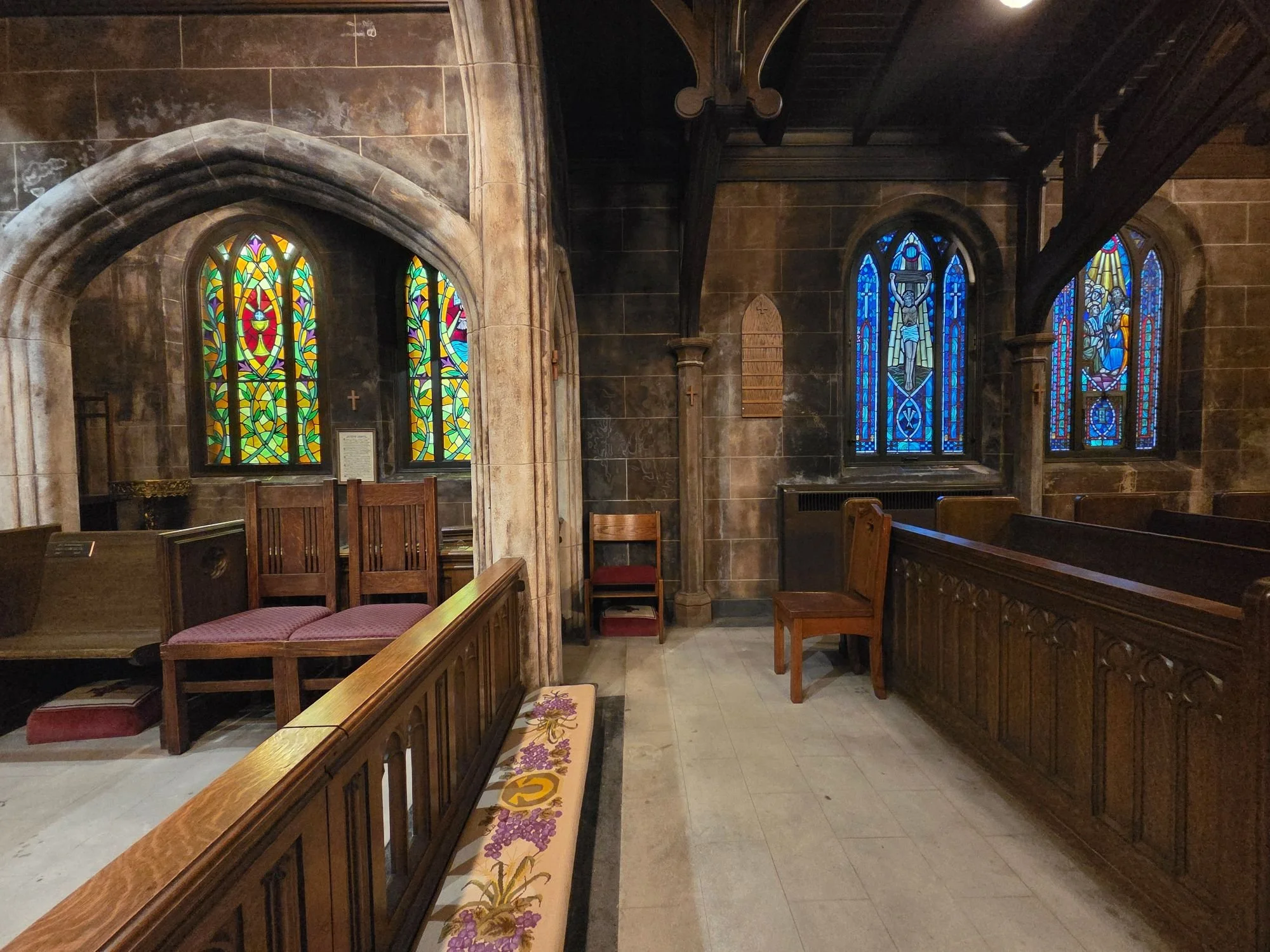 To the north of the church is the Chapel of Our Lady. Although the chapel was part of the original plan for the church, its interior was not completed until 1914, when the Barwell family undertook its renovation to honor the memory of Hattie Porter Barwell. Harry Mace of Evanston was the architect and Tobias Jensen completed the construction.